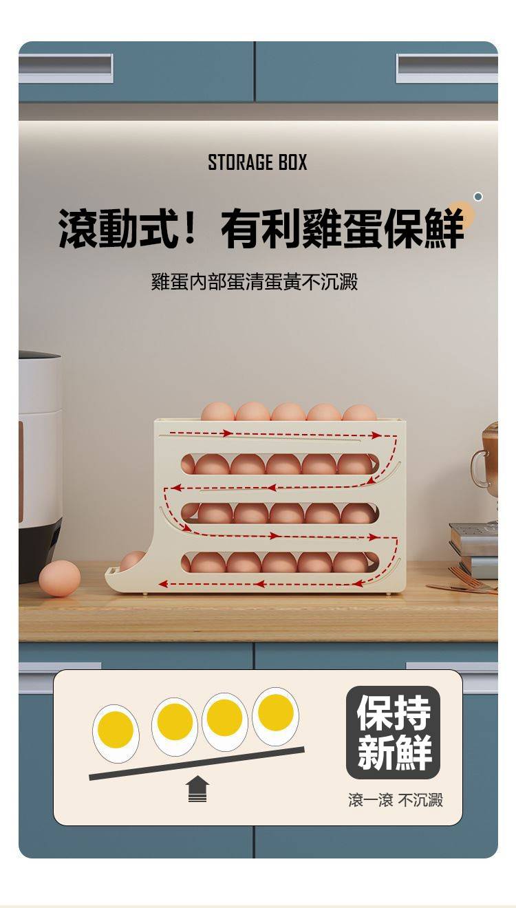 7分鐘前自動滾蛋式雞蛋收納盒 - 3入组(可放90個雞蛋)NT$1098